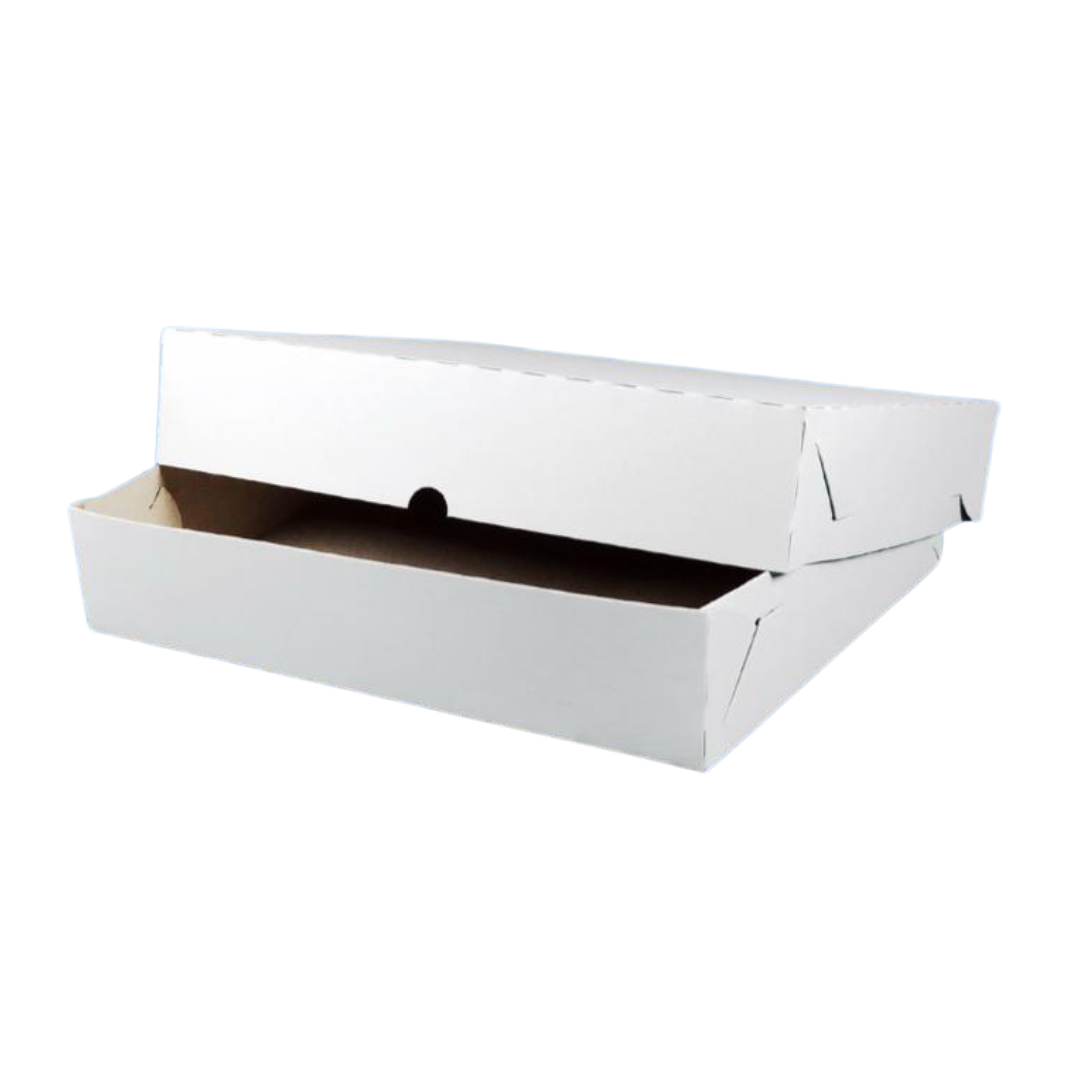 A Caixa Retangular Multiuso 30x25x6 cm é fabricada em papelão Paraná branco de resistente, ideal para embalar doces, salgados, lanches e outros produtos alimentícios.